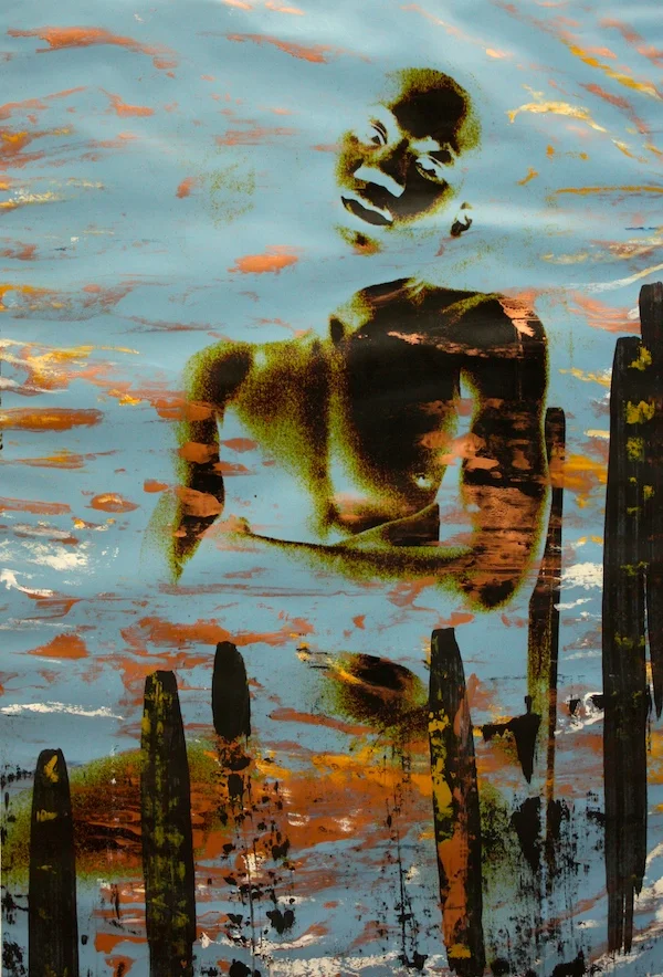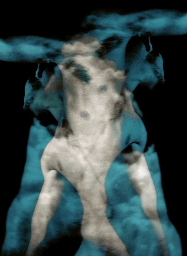 Born out of light, this series arises out of the combination of photographic and painterly impulses taking the image beyond the original shot of the figure illuminated with a projection. In many of these pieces I am applying paint to the printed photograph. In others I am using digital techniques to superimpose or enhance the contrast in the image.